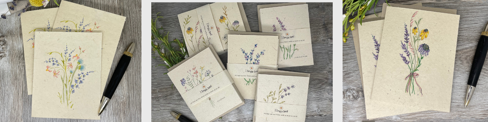 Our cards are made from wildflower seed paper. This paper is hand made in Nepal by rural craftspeople.